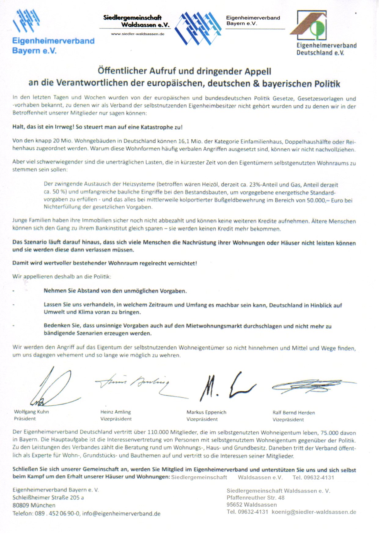 Walter Pilsak und Christine Bleiber gestalteten den Abend mit Musik, Witzen und einer Geschichte, die vom Inhalt einer Damenhandtasche erzählte und so manches Staunen hervorrief. Mitgliederversammlung vom 14.11.2019 In der Mitgliederversammlung ging es unter anderem um die Erhöhung des Jahresbeitrags der Siedlergemeinschaft. Vorsitzender Reinhard König berichtete von Landesverbandstag in München. Dort wurde das Präsidium neu gewählt und die Weichen für die Zukunft gestellt. Der Landesverband des Bayerischen Eigenheimer Verbandes will sich modernisieren und erneuern. Dies kostet allerdings Geld, deshalb wurde eine Beitragserhöhung beschlossen. Da die Siedlergemeinschaft schon die letzte Beitragserhöhung nicht an die Mitglieder weitergegeben hatte, war es nun erforderlich, auch eine Beitragserhöhung zu beschließen. Nach länger Diskussion wurde der Jahresbeitrag von 24.- auf 32.- € einstimmig beschlossen. Dieser Beitrag wird zum 1.1.2021 fällig. Hauptthema der Versammlung war die Vorstellung der Firma sonnen, ein Kooperationspartner des Eigenheimer Verbandes. sonnen vertreibt intelligente Batterien als Speicher für Photovoltaik – Anlagen. Somit kann sich der Besitzer einer Photovoltaik – Anlage bis zu 75% selbst mit Strom versorgen und in Verbindung mit der sonnenCommunity noch Geld verdienen. Durch die innovative Vernetzung mit anderen Community Mitgliedern kann man seinen Strom kostenlos beziehen und dabei sogar noch die Netzschwankungen und Spannungsspitzen verringern. In einem Projekt mit Tennet und IBM, werden die Batteriespeicher zur Stabilisierung des Netzes intelligent eingesetzt. 30000 Photovoltaik-Anlagenbesitzer gehören der sonnenCommunity an, der Großteil sind Eigenheimbesitzer.Mit kurzen Filmbeiträgen wurden die komplexe Thematik und die Möglichkeit, welche die Firma sonnen mit ihrer Community bietet, eindrucksvoll erklärt. Wer einen Neubau plant, oder investieren möchte, hat hier die Gelegenheit kostenlos sauberen Strom zu beziehen und noch Geld zu verdienen. Mitgliederversammung vom 25.05.2019 bei der Mitgliederversammlung wurde der folgende Vorstandschaft gewählt: 1.Vorsitzender: Reinhard König 2.Vorsitzender: Karl Kunz 1. Kassier: Helene Kunz 1. Schriftführer: Harald Sommer 2. Schriftführerin: Waltraud König Kassenrevisoren: Stefan Hart, Bruno Salomon Ersatz: Gerald Hruby Beisitzer: Bettina Bomann, Jürgen Bomann, Thomas Boman, Wolfgang Heinl Künftig keine Heizöl-Sammelaufträge Seit 20 Jahren führt Reinhard König als Vorsitzender die Siedlergemeinschaft Waldsassen. Jetzt wurde er in der Generalversammlung für zwei weitere Jahre im Amt bestätigt. Dennoch gibt es für die Mitglieder eine wichtige Veränderung.