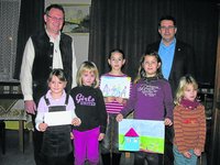 Die Gewinner des Malwettbewerbes der Siedlergemeinschaft Waldsassen. Amelie Brandl, Lotte Doeberl, Glorila Riedl, Natalie Brandl und Mona Koch mit Vorstand Reinhard König und 2.Vorstand Harald Sommer. Nicht auf dem Bild ist Julia Bauer. ************************************************************