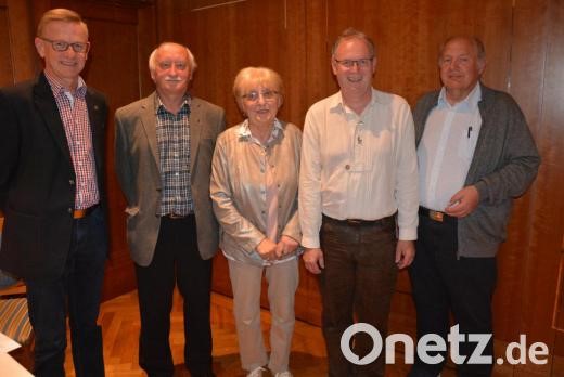 Nur wenige der zu ehrenden Mitglieder waren gekommen. Von links Ferdinand Sperber, Gerald Hruby, Rosemarie Selch, Reinhard König (alle für 25 Jahre), sowie Zweiter Vorsitzender Karl Kunz. Reinhard König wurde in der Generalversammlung für zwei weitere Jahre im Amt bestätigt. Weiter im Vorstand sind als stellvertretender Vorsitzender Karl Kunz, Kassiererin Helene Kunz, Schriftführer Harald Sommer, Stellvertreterin Waltraud König. Kassenrevisoren sind Gerald Hruby, Stefan Hart und Bruno Salomon. Beisitzer sind Jürgen Bomann, Bettina Bomann, Wolfgang Heinl und Thomas Bomann. Der Posten des Gerätewarts, den viele Jahre der kürzlich verstorbene Rudolf Heinl inne hatte, bleibt zunächst unbesetzt. König erinnerte bei dem Treffen im Gasthof Bayerischer Hof an die Arbeit in den vergangenen beiden Jahren und erwähnte dabei Mitgliederversammlungen zu aktuellen Themen – mit Rainer Fischer zum Thema „Rente und Steuern“ und mit Notarin Sonja Pelikan zum Thema „Erben und Vererben – Übergabe zu Lebzeiten“. Außerdem seien Heizöl-Sammelbestellungen organisiert worden. Diese werde es künftig nicht mehr geben: Als Gründe nannte König den Datenschutz und die Gesamtschuldnerhaftung der Besteller.Als angespannt bezeichnete König die Situation beim Gerätewart. Hier werde dringend jemand gesucht. Derzeit übernehmen er, König, sowie Luise Heinl vorübergehend den Verleih sowie die Pflege und Wartung der Geräte. Weiter berichtete der Vorsitzende von der Bezirksversammlung in Regensburg. König wurde als Delegierter zur Landesversammlung im Oktober in München gewählt. Die Zahl der Mitglieder im Ortsverein Waldsassen bezifferte der Vorsitzende auf 380 Personen. Weiter stand die Ehrung langjähriger Mitglieder auf der Tagesordnung. Leider waren nur wenige der zu Ehrenden gekommen. Es gab jeweils eine Urkunde, eine Ehrennadel und ein Präsent. 50 Jahre bei der Siedlergemeinschaft sind Anneliese Ascherl, Dorothea Dorschner, Alfons Haberkorn, Karl Roth und Margarete Wild. 40 Jahre dabei sind Reinhard Erl, Apollonia Hahn, Kurt Roppert, Otto Summer und Karl Vetter. 25 Jahre Mitglied sind Peter Christ, Thomas Dendorfer, Jürgen Faltenbacher, Angela Fendl, Erna Franz, Angela Fräsdorf, Adolf Fuhrmann, Elfriede Gammanick, Rainer Gerl, Heinrich Heinl, Christiane Hencke, Gerald Hruby, Bruno Jergens, Reinhard König, Reinhard Ott, Stefan Schnurrer, Rosemarie Selch, Ferdinand Sperber, Ernst Thümling und Heinrich Wichary.