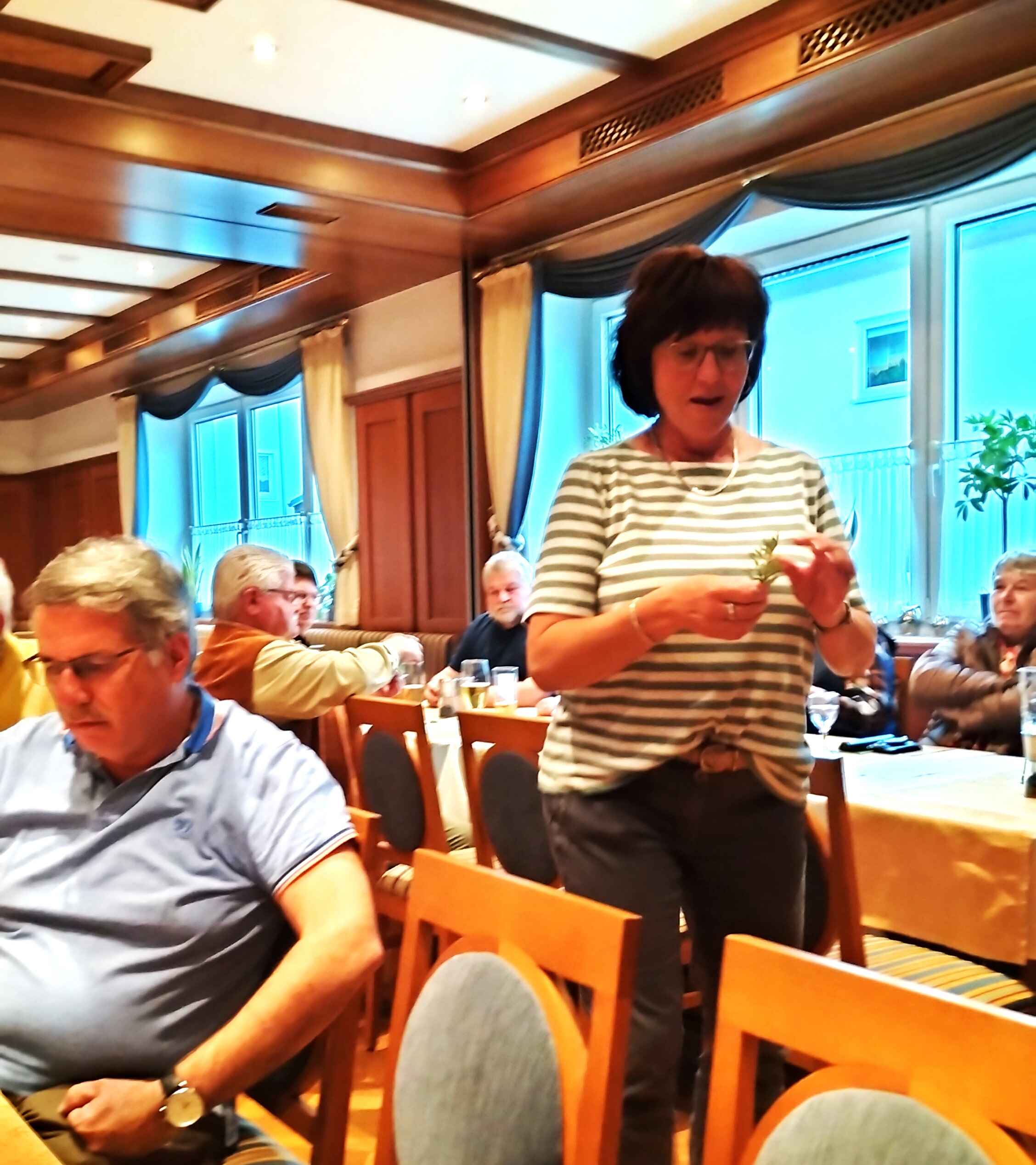 Mitgiederversammlung vom 19.05.2025 Für alles ist ein Kraut gewachsen Thema der Mitgliederversammlung der Siedlergemeinschaft „Kräuter in Haus und Garten“, Vortrag von Petra Stark war ein voller Erfolg. Begeistert folgten die Zuhörer den Ausführungen der Referentin. Was so mancher als Unkraut aus seinem Garten verbannte, entpuppte sich als nützliches Kräutlein mit heilsamer Wirkung. So gab es viel zu entdecken und über die Kräfte der Kräuter zu erfahren. Die Kräuterführerin konnte die vielen Fragen der Mitglieder souverän beantworten.