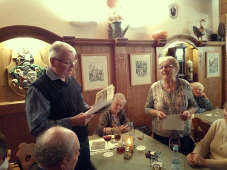Mit Geschichten von der Zipfelmütze als Weihnachtsgeschenk, vom Aussterben der deutschen Sprache oder warum man sich besser einen Hund zulegen sollte als zu heiraten, wurden die Gäste bestens unterhalten. ****************************************************** Mitgliederversammlung am 28.10.2014