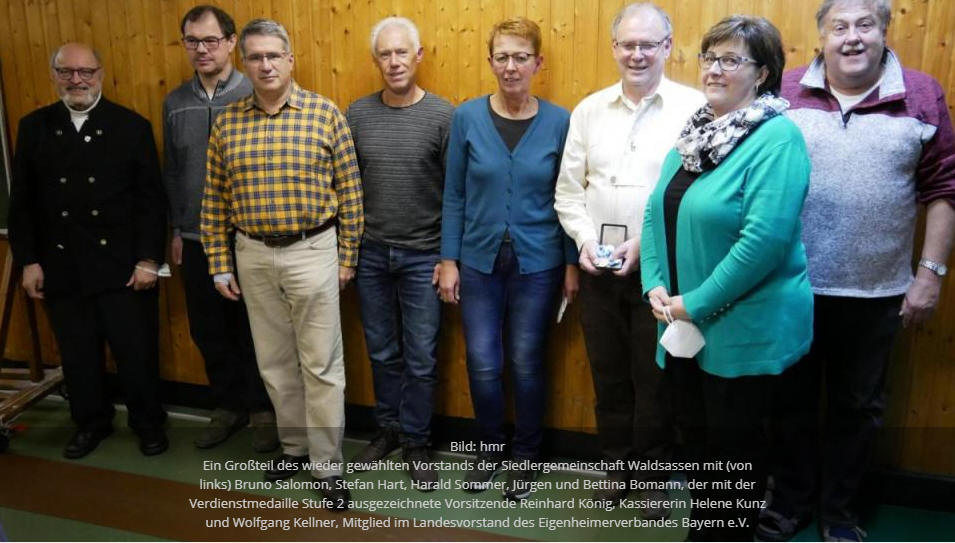 Austritte nach BeitragserhöhungKönig berichtete von seiner Teilnahme als Delegierter am Landesverbandstag in München im Oktober 2019, bei dem es auch um die Erhöhung des Mitgliedsbeitrags ging. Dieser sei auch von der Siedlergemeinschaft in einer Mitgliederversammlung im Jahr 2019 von 24 auf 32 Euro angepasst worden. „Zwar ist damit die Einbeziehung der Wohnungs- und Grundstücksrechtschutzversicherung verbunden, jedoch hat die Erhöhung wohl auch als Grund für einige der danach erfolgten 27 Austritte gedient“, bedauerte König Die letzte Veranstaltung seither war der wie immer gut besuchte Hutzaabend mit den Wondrebtaler Musikanten im Gasthof Prinzregent-Luitpold am 30. November 2019. Bei einer digitalen Bereichsversammlung, an der er teilgenommen habe, sei die neue Rechtsschutzversicherung vorgestellt worden. In der Vorstandssitzung zur Vorbereitung des Jahrestreffens habe es nicht für alle Ämter Vorschläge gegeben. „Da wir bis heute auch keinen neuen Gerätewart für die vereinseigenen Gerätschaften gefunden haben, wird diese Aufgabe bis jetzt noch von mir selbst und von Luise Heinl wahrgenommen“ hoffte der Vorsitzende auf eine baldige Lösung. Im von Helene Kunz detailliert vorgetragenen Kassenbericht für die Jahre 2019 und 2020 erwähnte diese auch die Anschaffung von drei vereinseigenen Notebooks. Kassenprüfer Bruno Salomon bescheinigte der Kassiererin auch im Namen seines Kollegen Stefan Hart eine gute und saubere Kassenführung. Wolfgang Kellner aus Waldershof, Mitglied im Landesvorstand des Eigenheimerverbands Bayern e.V. für die Region Oberpfalz, Ober- und Mittelfranken, appellierte an die Mitglieder, sich für die Vorstandsämter zur Verfügung zu stellen. Allgemein sei es in vielen Vereinen ein Problem, die Funktionen zu besetzen. Das habe auch in den Siedlervereinen dazu geführt, dass schon einige Gemeinschaften aufgelöst werden mussten. „Ich habe in meinem Zuständigkeitsbereich nur noch sechs Vereine zu betreuen und mit der Auflösung enden auch die Versicherungen für die ehemaligen Mitglieder“, so der Sprecher. Die Neuwahlen brachten folgendes Ergebnis: Erster Vorsitzender Reinhard König, Zweiter Vorsitzender Karl Kunz, Kassiererin Helene Kunz, Schriftführer Harald Sommer, stellvertretende Schriftführerin Bettina Bomann, Kassenrevisoren Bruno Salomon und Stefan Hart sowie als Stellvertreter Gerald Hruby, Beiräte Jürgen und Thomas Bomann, Wolfgang Heindl und Gerald Hruby.